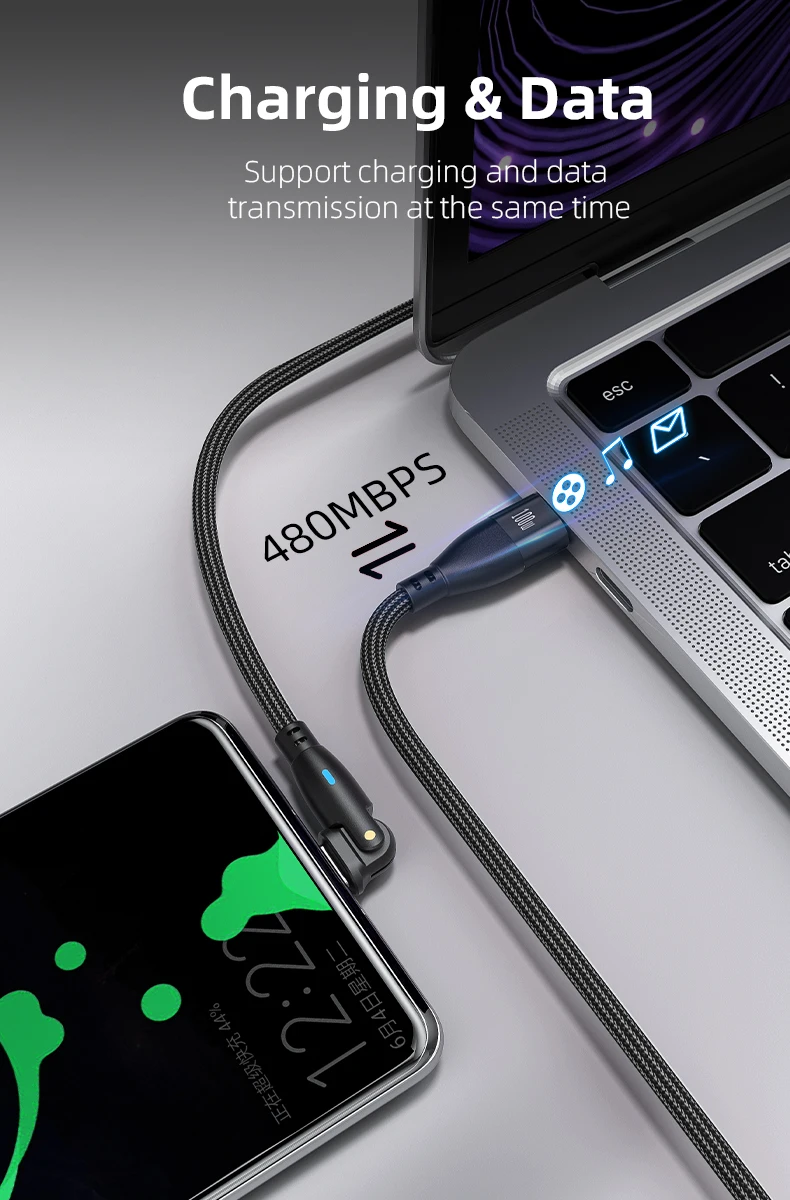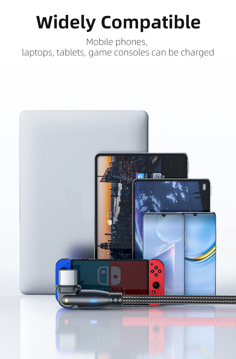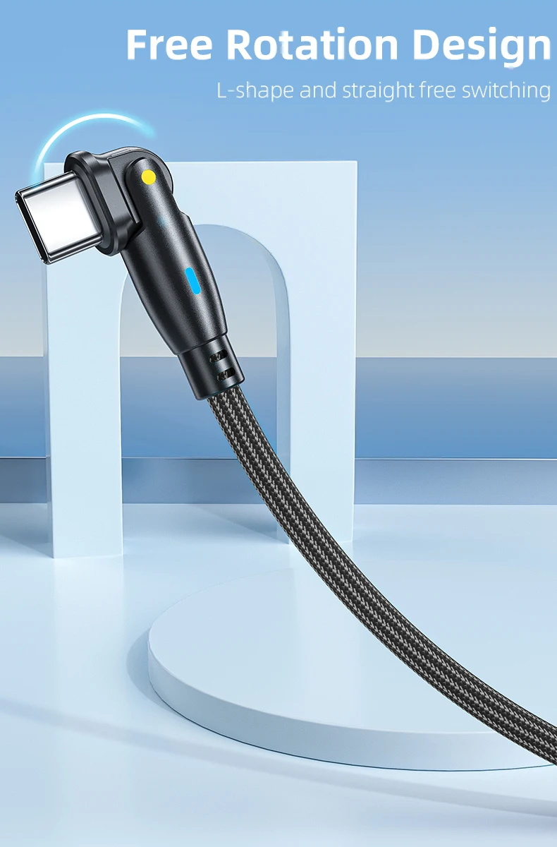This innovative cable design allows for a 180-degree rotation, making it versatile and adaptable to different charging scenarios. Enjoy flexible charging positions for maximum convenience.